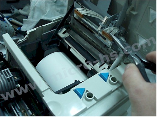 Imprimante EPSON TM-U Séries Changement de la courroie d’entrainement : Dans les imprimantes Ticket de caisse, les courroies longues et courtes sont l’un des principaux composants du système d’entraînement responsable du mouvement du chariot. La courroie est entraînée d'avant en arrière sur la poulie de l'axe principale de l'imprimante de caisse, ce qui permet au chariot de la tête d’impression matricielle de se déplacer le long du rail pendant le processus d’impression. Si la courroie commence à montrer des signes visibles d'usure et de déformation, ou si la courroie fragilisée se casse, contactez nos équipes de maintenance pour effectuer le remplacement de cette pièce détachée. De même, lorsque l'impression du ticket de vente ou sur le journal de caisse est décalée ou en surimpression, c'est bien le signe d'une courroie d'entrainement défectueuse.